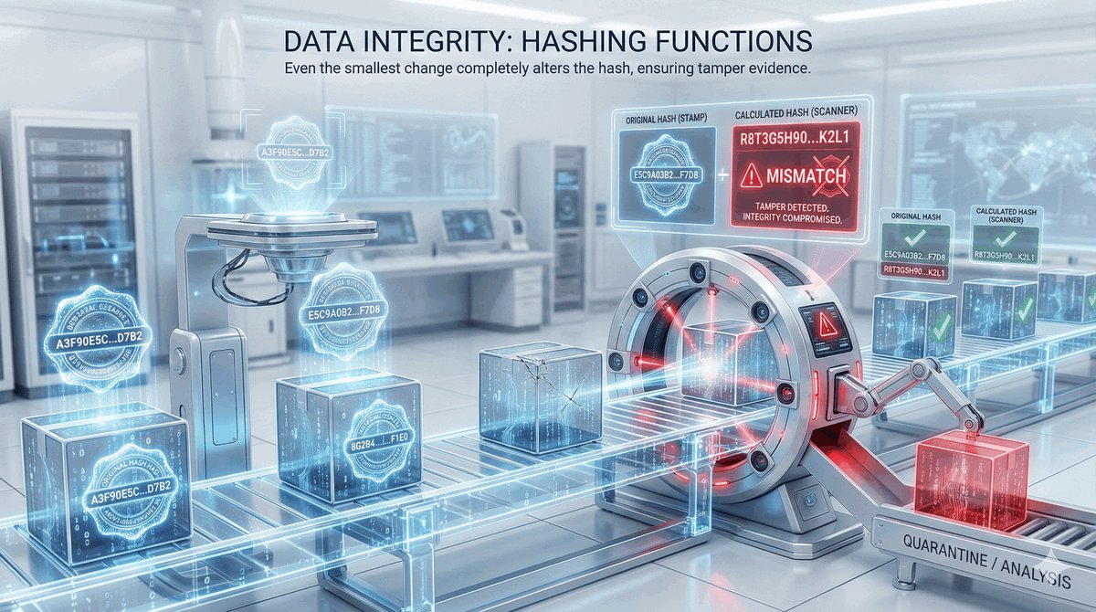 I - Integrity (Integralność): Gwarancja, że dane nie zostały zmienione podczas transmisji.