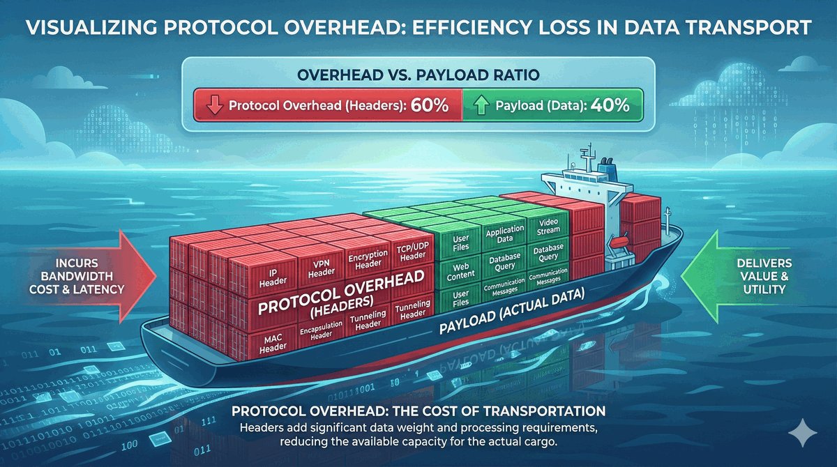 W przypadku małych pakietów (np. ruch głosowy VoIP) narzut może stanowić znaczącą część całej transmisji.