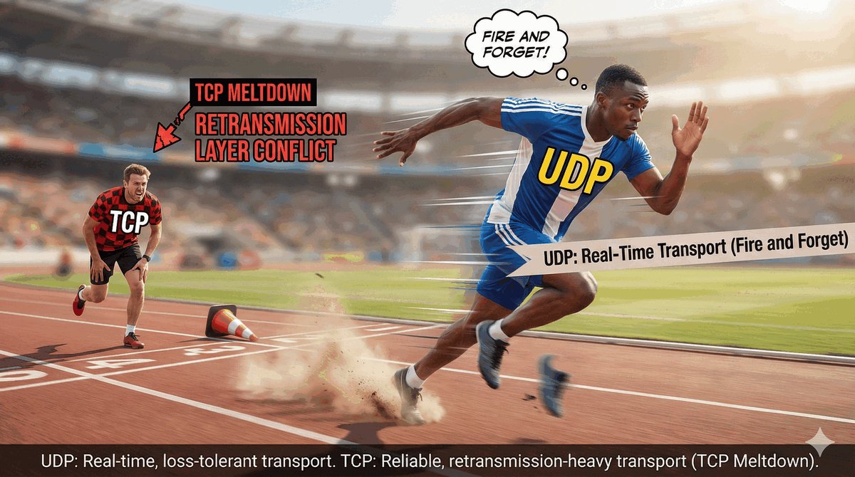 Problem "TCP-over-TCP meltdown": Jeśli tunelujemy TCP wewnątrz TCP, mechanizmy retransmisji obu warstw mogą wejść w konflikt, powodując drastyczny spadek wydajności w przypadku utraty pakietów.