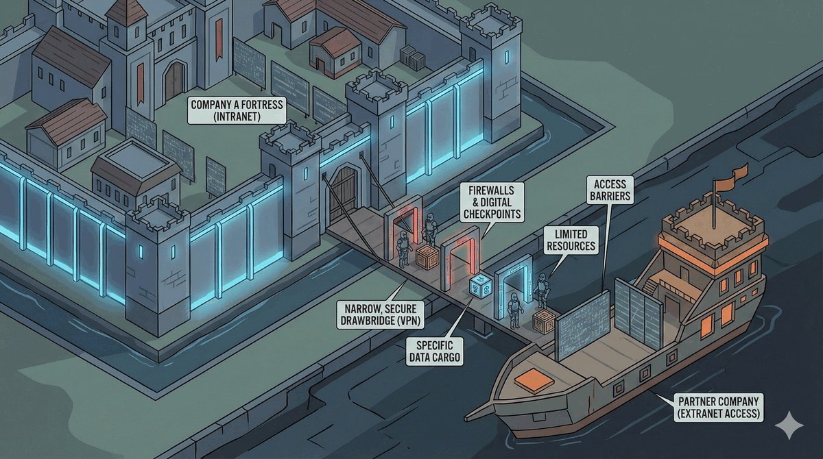 Łączy sieć firmową z siecią partnera zewnętrznego, dostawcy lub klienta.