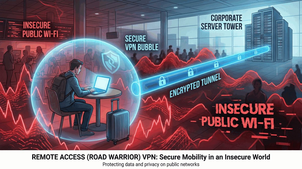 Remote Access (Client-to-Site): Pracownik zdalny (Home Office) łączy się z zasobami firmy.