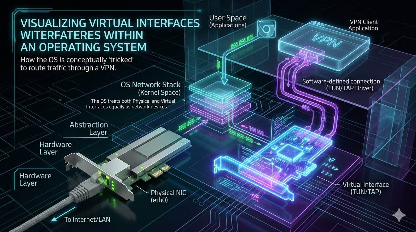 Z punktu widzenia systemu operacyjnego VPN widoczny jest jako dodatkowa karta sieciowa (np. tun0).