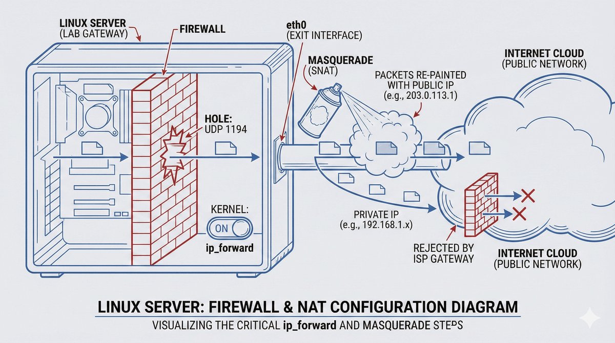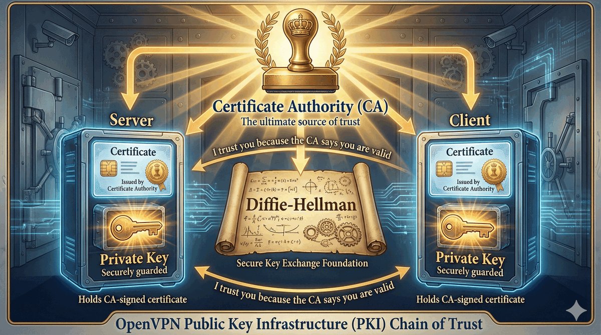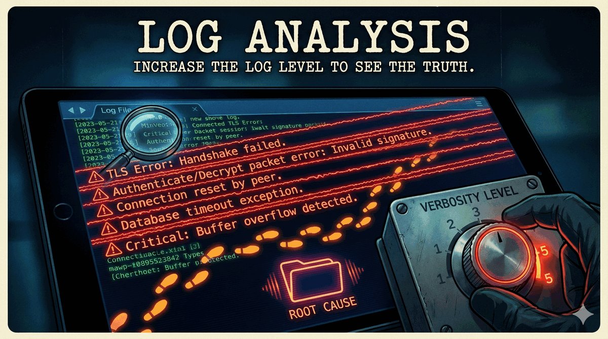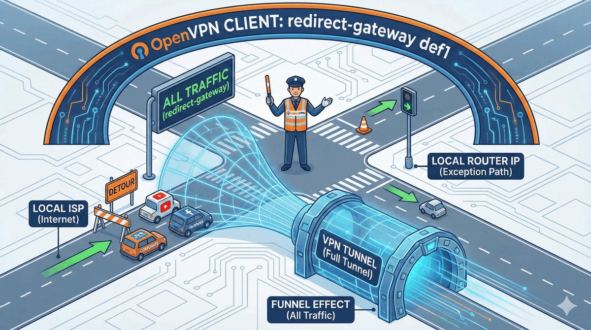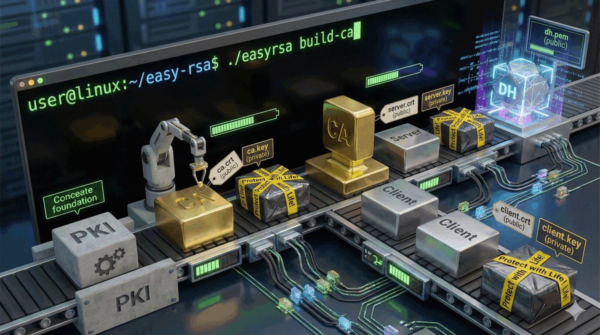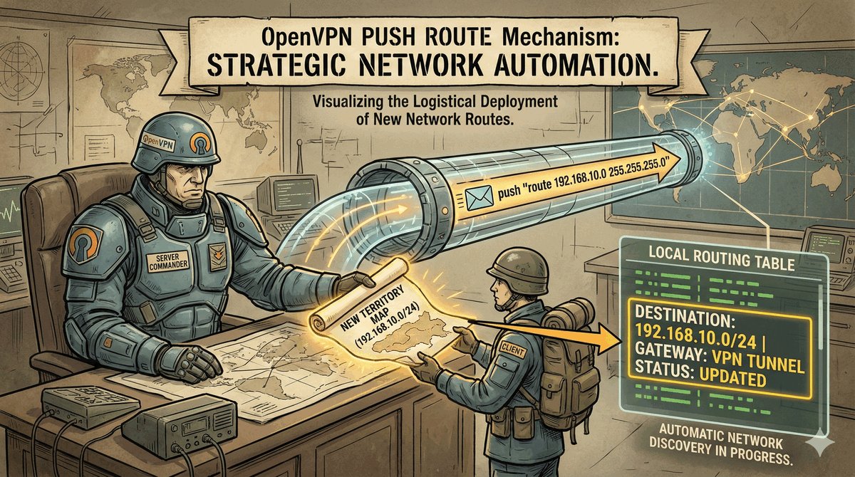 push "route 192.168.10.0 255.255.255.0"push "redirect-gateway def1".def1 inteligentnie chroni dostęp do lokalnej sieci użytkownika, tworząc dwie precyzyjne trasy zastępcze zamiast usuwania domyślnej bramy.comp-lzo) są obecnie odradzane.TLS key negotiation failed to occur within 60 seconds.Certificate is not yet valid lub expired.verb reguluje szczegółowość dziennika zdarzeń (standardowo 3)./system logging add topics=ovpn,debug.Użycie Easy-RSA w środowisku Linux/WSL: