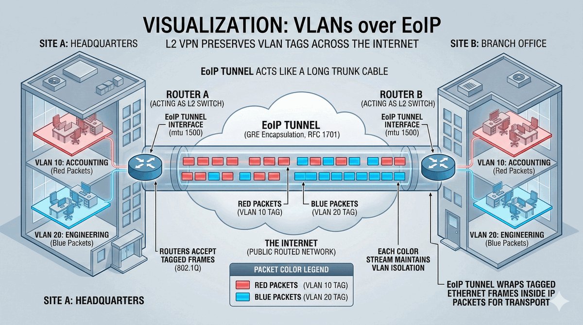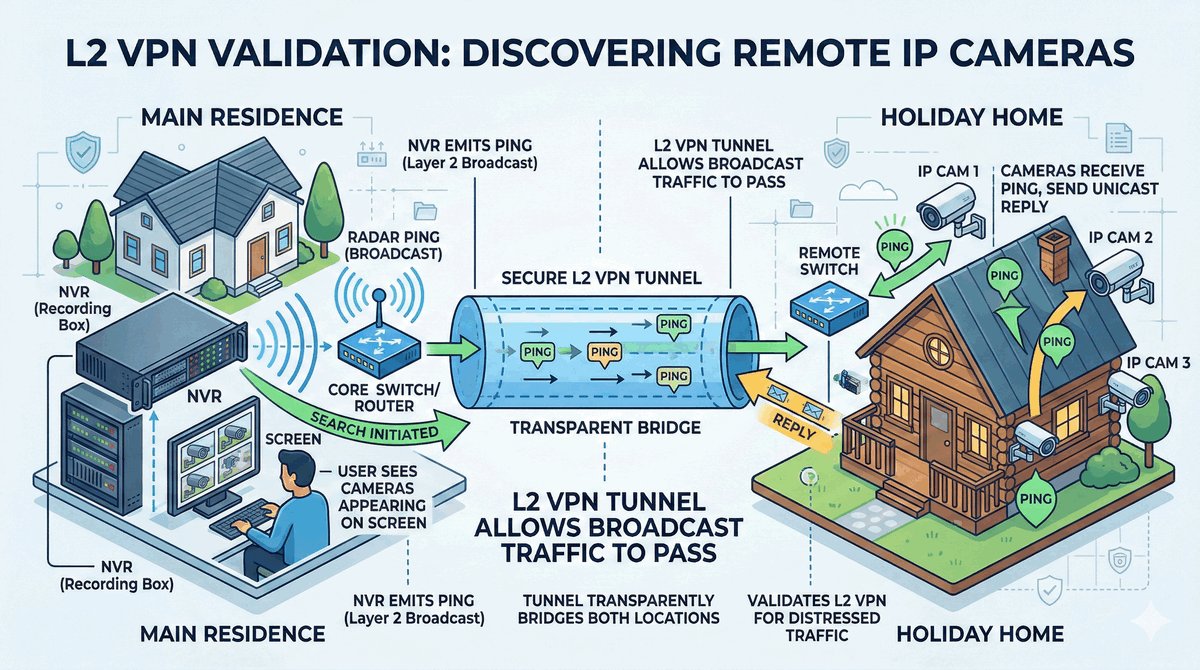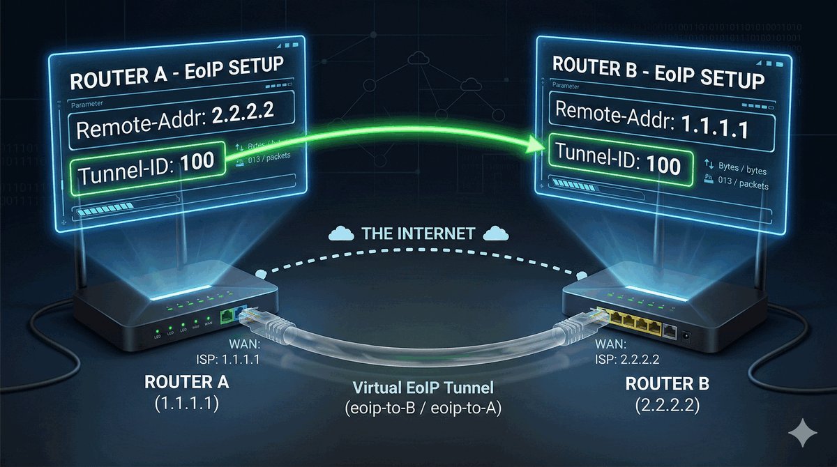 Po wykonaniu tych kroków pakiety ARP i DHCP swobodnie przechodzą przez tunel, a urządzenia "widzą się" bez konieczności stosowania routingu.